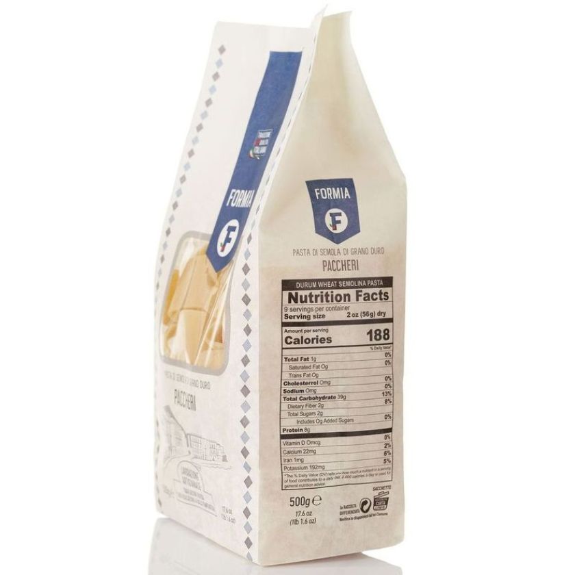 I nostri Paccheri sono realizzati con 100 % semola di grano duro italiana e sola acqua, senza additivi o conservanti.